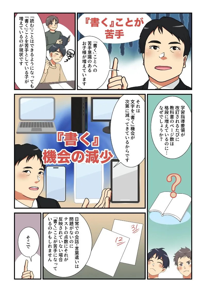 代表「『書く』ことへの苦手意識のあるお子様が増えています」